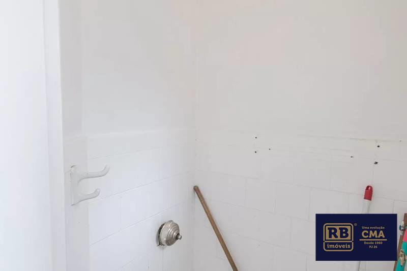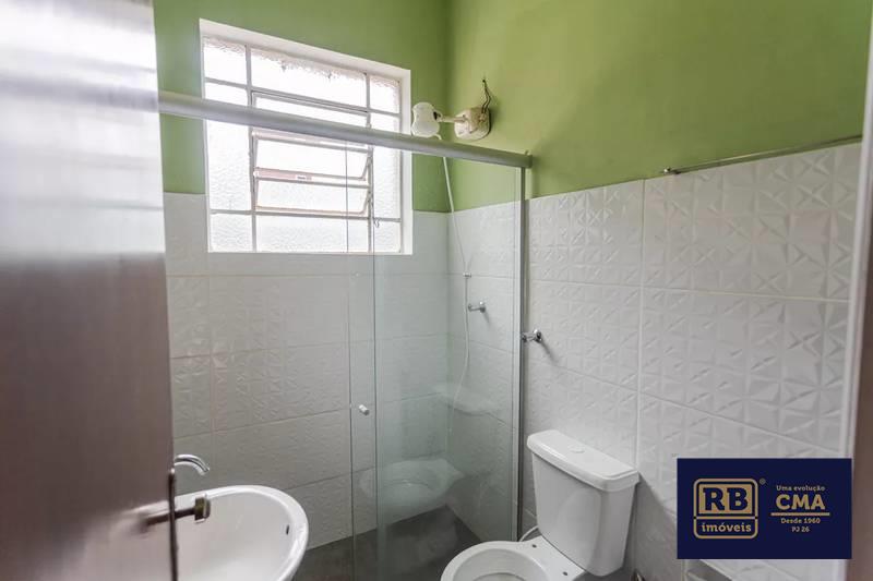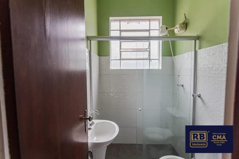 Banheiro social com pia em cuba de apoio e box em blindex